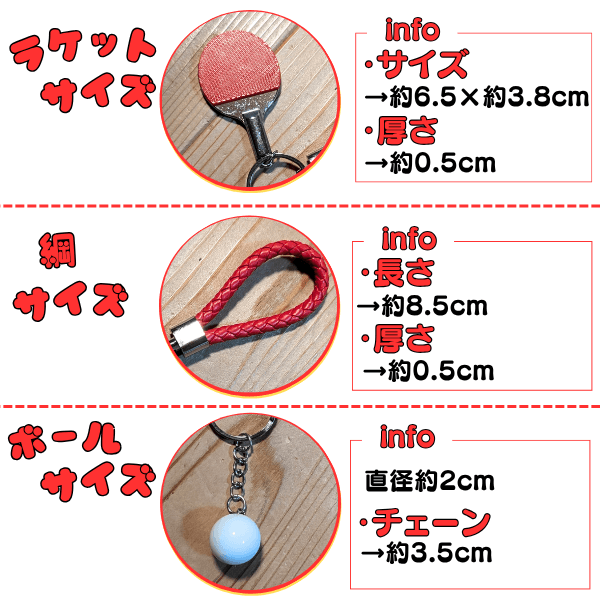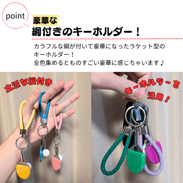 大綱付きメタリック卓球ラケットキーホルダー 1個